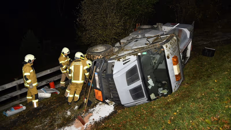 Der Tankwagen kippte um und blieb auf der Seite liegen. Der 47-jährige Lenker blieb unverletzt. Heizöl trat nicht aus, der Lkw wurde aber schwer beschädigt. Die Freiwillige Feuerwehr Wattenberg stand mit 14 Männern im Einsatz. Vor der Fahrzeugbergung mussten sie den Tankinhalt abpumpen. (TT.com)