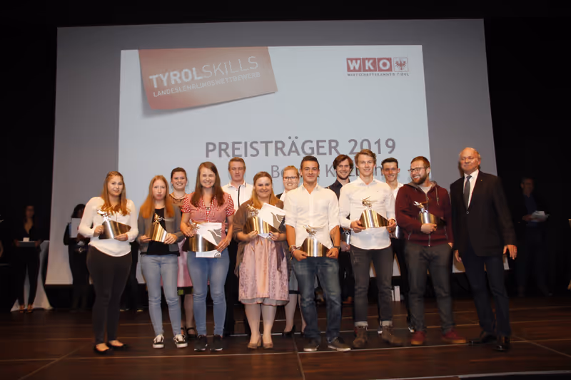 Kitzbühel –Die Talsohle scheint durchschritten – die Zahlen bei den Lehrlingen im Bezirk Kitzbühel steigen wieder. Das gab am Dienstagabend Wirtschaftskammer-Bezirksobmann Klaus Lackner im Rahmen der Abschlussfeier zum Tiroler Lehrlingswettbewerb bekannt. Dabei wurden die erfolgreichen Teilnehmer, welche im Bezirk Kitzbühel eine Lehre absolvieren, von der Wirtschaftskammer geehrt. Nicht weniger als 49 Jugendliche konnten bei dem Bewerb, der nun seit einigen Jahren „Tyrol Skills“ heißt, eine Auszeichnung erzielen. Im Bezirk Kitzbühel kann man sich heuer über zwei zweifache Landessieger, 11 Landessieger, acht Zweitplatzierte, sieben Drittplatzierte sowie 21 Lehrlinge mit Goldenem Leistungsabzeichen freuen.