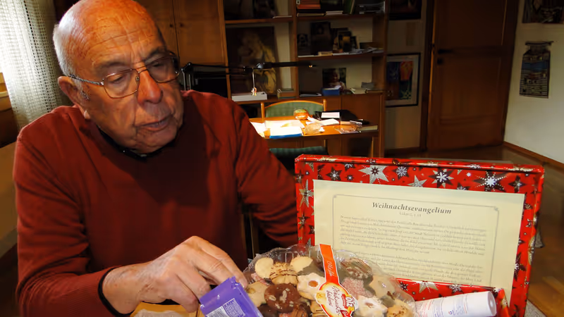 „Jeder, der mag, kann einen unserer Kartone mit originalverpackten Süßigkeiten sowie Toilettenartikeln oder Rauchwaren füllen“, sagt Theurl. Zudem gibt er jeweils ein Weihnachtsevangelium und ein Bild hinzu. Die Boxen gibt es im Pfarramt St. Barbara.