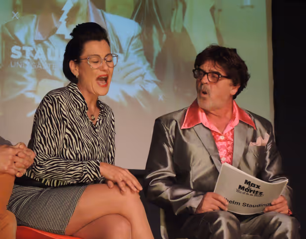 Unter der Regie des aus Breitenwang stammenden und als Dramaturg und künstlerischer Produktionsleiter an den Wuppertaler Bühnen tätigen Peter Wallgram wird auf köstliche Art vorgeführt, wie es denn Max und Moritz erginge, spielten sie ihre mit so viel kriminellem Potential aufgeladenen Streiche im Jahre 2019. Nach dem dritten Streich, die Hühner sind verspeist und das Publikum weint mit der bemitleidenswerten Witwe Bolte (Sabrina Mürkl), wird ihr Fall in einer Talkshow, geleitet von einem durchgeknallten Moderator in der Person von Fritz Höllrigel, analysiert.