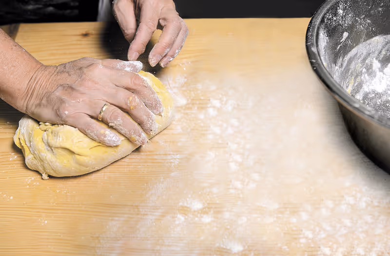 Echtes Handwerk: Schreibtischarbeiterinnen beim Teigkneten.