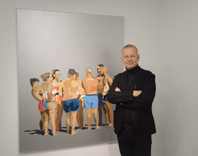 Da sind einmal seine Bronzefiguren, die so genannten Protagonisten, die reduziert auf Rückenansichten Fragen zu Begriffen von Wahrnehmung und Identität stellen. Neben der Selbst- und Fremdwahrnehmung kommt da eine dritte Dimension ins Spiel, die dritte Seite der Medaille sozusagen. Die der eigenen seelischen Facetten, von denen man mitunter nur ansatzweise ahnen kann, wie sie beschaffen sind.