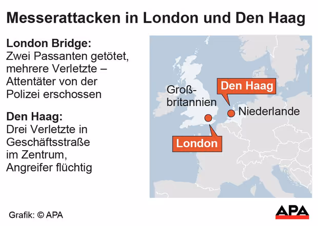 Ein Mann sticht in Den Haag um sich. Drei junge Menschen werden verletzt. Der Täter kann fliehen. Der Angriff erfolgt wenige Stunden nach einer Terrorattacke in London. Das Motiv ist noch unklar, Hinweise auf ein terroristisches gibt es jedoch keine.