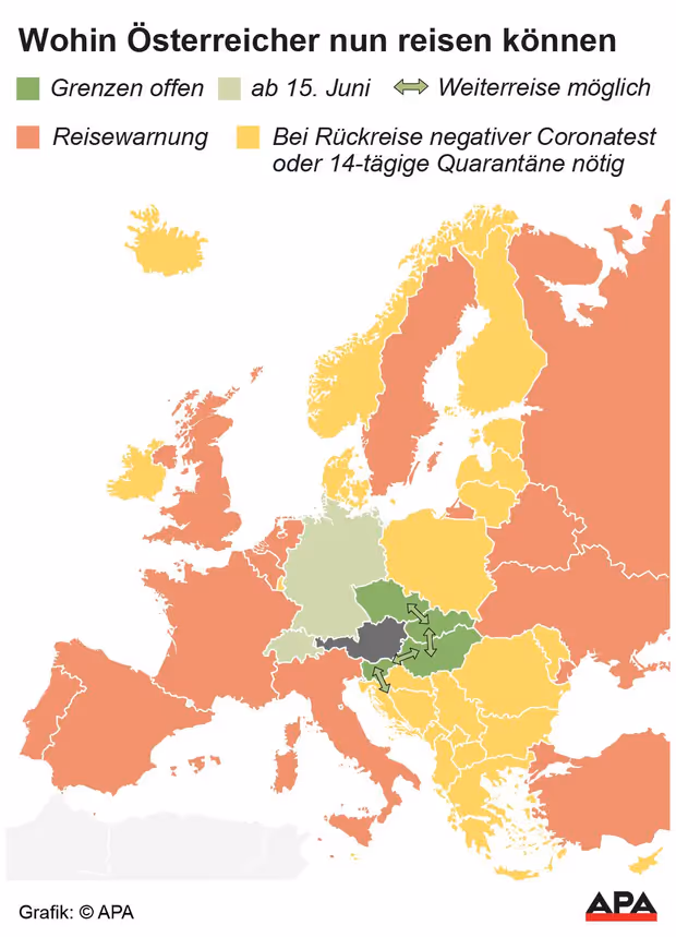 Bis zum Juli braucht man aber auch innereuropäisch noch immer eine Art Reiseführer, um zu wissen, wohin die Österreicher unter welchen Bedingungen fahren können. Ein Überblick: