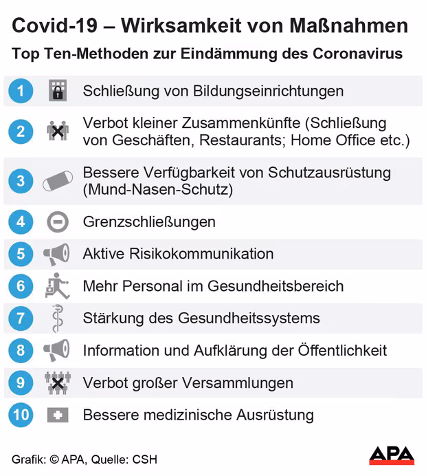 ➤ Grenzschließungen und eine aktive Risikokommunikation, etwa durch die Förderung von Sicherheitsprotokollen in Firmen oder bei Veranstaltungen, sind ebenfalls wirksam.