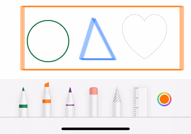 Neu unter iOS14 ist auch die sogenannte Shape Recognition, zu Deutsch Formenerkennung. Wer in Notizen, auf Screenshots oder anderen Bildern etwas einkreisen oder anderen Formen, Pfeile, Linien darauf zeichnen will, muss mit den Stiftwerkzeugen genau das tun und dann den Finger noch kurz gedrückt halten. Dann wird das Gekritzel wie von Zauberhand in die gewünschte Form „gegossen" bzw. angepasst. Auch die Farbauswahl wurde um ein Spektrum und weitere Regler (z.B. Deckkraft) erweitert.