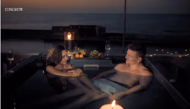 Sei es wie es sei: Den Mount Melissa wird so schnell wohl niemand von diesen invaliden Intelligenzpatienten besteigen. Stattdessen besteigt sie den prall bewässerten Jacuzzi mit Moritz, der dort in der Abenddämmerung mit ihr rumdümpeln und „ihr Bein streicheln" darf. Und weil RTL ja sparen muss, sorgt er für das Blubbern im Bottich praktischerweise selbst, als er fröhlich vor sich hin flatulenzt und die Schuld dann spitzbübisch grinsend auf seine Badehose schiebt.