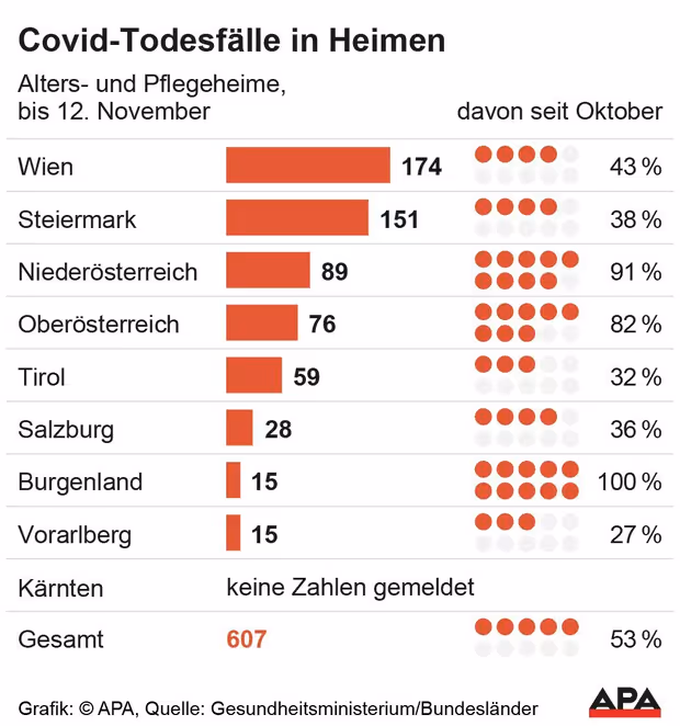 Die Zahlen zeigen, dass die jetzige Corona-Welle massiv in Österreichs Alten- und Pflegeheimen durchschlägt. Mehr als die Hälfte aller Covid-Opfer in den Heimen sind seit Oktober verstorben. Politisch sorgt das Sterben in den Heimen für Kritik. Altenheime fallen in die Kompetenz der Länder und Gemeinden. Diese hätten versagt, klagen die NEOS. (aheu, APA)
