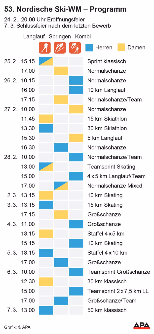 📆 Das Programm der Nordischen Ski-WM 2021: