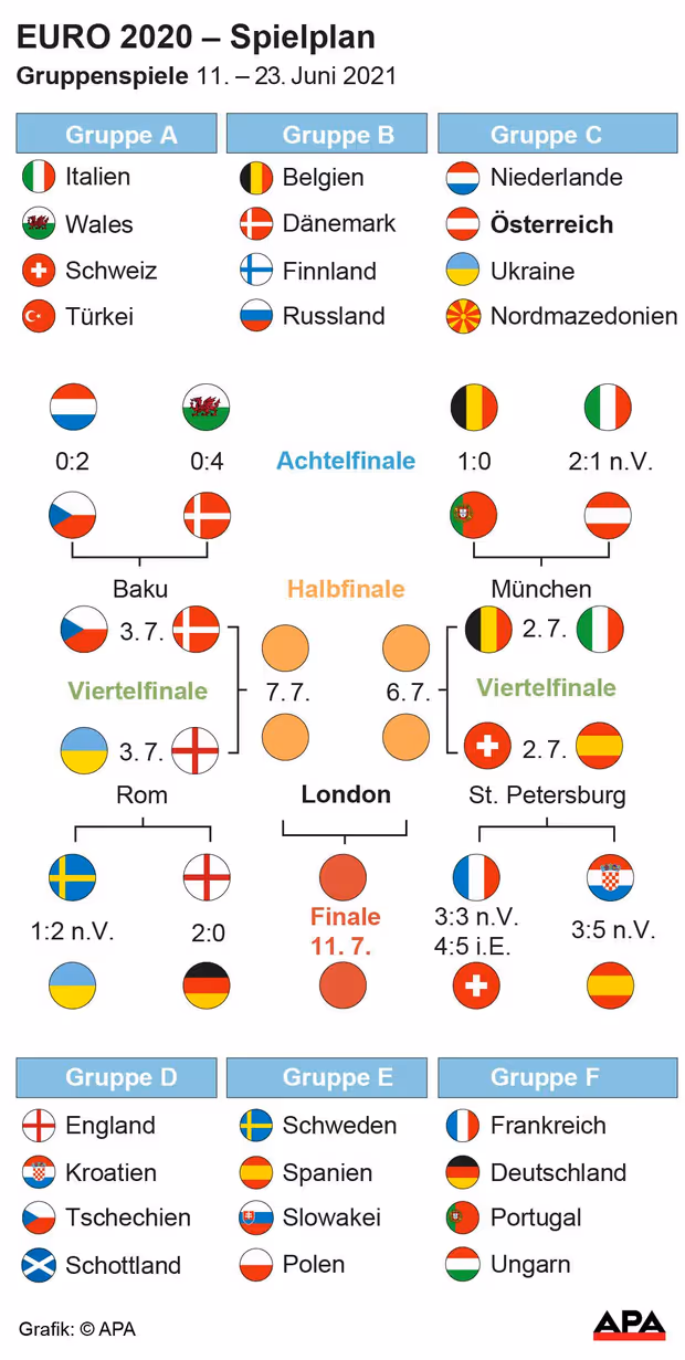 Dennoch haben die Spanier den Weg zu Lösungen in der Offensive gefunden. Ihre Fähigkeit, den Ball in den eigenen Reihen zirkulieren zu lassen, hatte schon davor kaum Anlass zu Kritik geboten, sofern man nicht prinzipiell ein Gegner dieser Spielweise ist. Der hohe Ballbesitz-Anteil bedeutet im Fall der Spanier aber auch, dass die Gegner zu wenigen Chancen kommen. Das Kroatien-Resultat mag auf den ersten Blick täuschen, zumal ein Treffer auf die Kappe von Tormann Unai Simon ging. In der Gruppenphase hatte Spanien nur ein Tor kassiert.