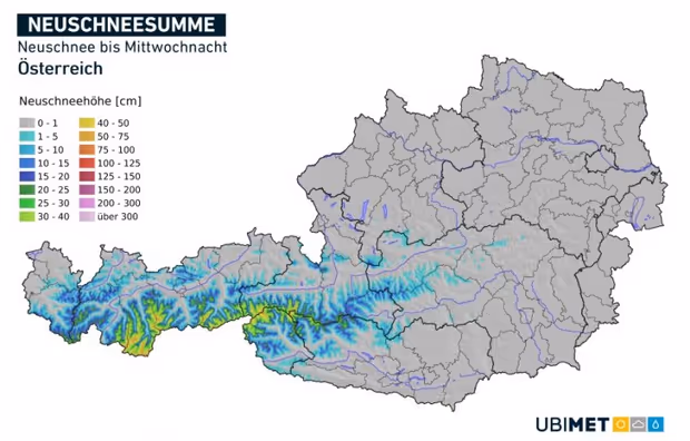 Am trübsten sind die Aussichten diese Woche für Mittwoch: „Es regnet von der Früh weg, teils auch länger anhaltend", so Troger. Ein echter Wintereinbruch ist im Tal zwar noch kein Thema, die Schneefallgrenze fällt aber rasch auf 1400/1500 Meter. Im Lechtal oder im Arlberggebiet beispielsweise mischen sich also Schneeflocken zu den Regentropfen. Am Nachmittag lassen die Niederschläge vom Westen her langsam nach.