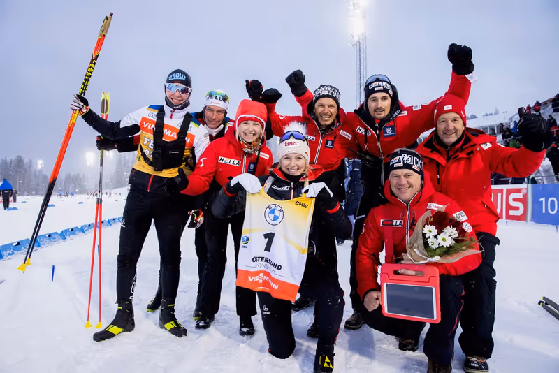 Das Team um Ausnahme-Biathletin Lisa Hauser: Die Tirolerin kommt in Gelb nach Hochfilzen.