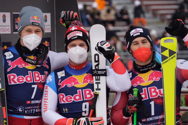 Odermatt übertrieb es bei seinem spielerisch-verwegenen Ritt, indem er ohne Driftschwung an der Hausbergkante nur mit Mühe im Kurs blieb. Feuz nahm dem überlegenen Gesamtweltcup-Führenden am letzten Teilstück die entscheidenden Hundertstel ab. "Klar will man in Kitzbühel zurückschlagen, wenn der Vinc in Wegen gewonnen hat. Mit Odermatt und mir hat das heute gut funktioniert", sagte der seit kurzem zweifache Papa Feuz, der sich seinen ersten Saisonsieg für ein großes Rennen aufgehoben hatte. Ein Jahr nach seinem Streif-Doppel bleibt der 34-Jährige der Kugelblitz von Kitz. Öfter gewonnen haben die Traditions-Abfahrt nur sein Landsmann Didier Cuche (5) und Franz Klammer (4).