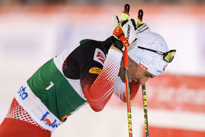 Ausgepumpt, aber hochzufrieden: der Tiroler Kombinierer Lukas Greiderer.