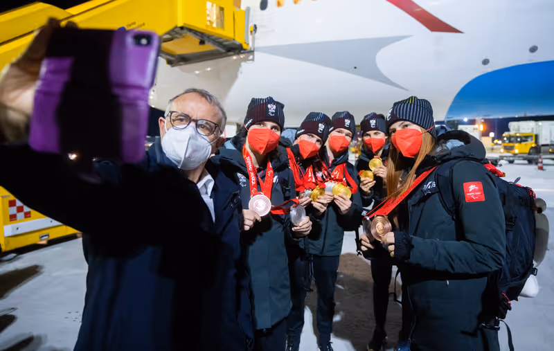 Wien, Schwechat – Österreichs mit 13 Medaillen überaus erfolgreiches Paralympics-Team ist am Montag nach der Rückkehr aus Peking auf dem Flughafen in Schwechat empfangen worden. Die Sportlerinnen und Sportler wurden bereits auf dem Rollfeld von einer offiziellen Delegation, angeführt von Sportminister Werner Kogler (Grüne) und Niederösterreichs Landeshauptfrau Johanna Mikl-Leitner (ÖVP), willkommen geheißen.