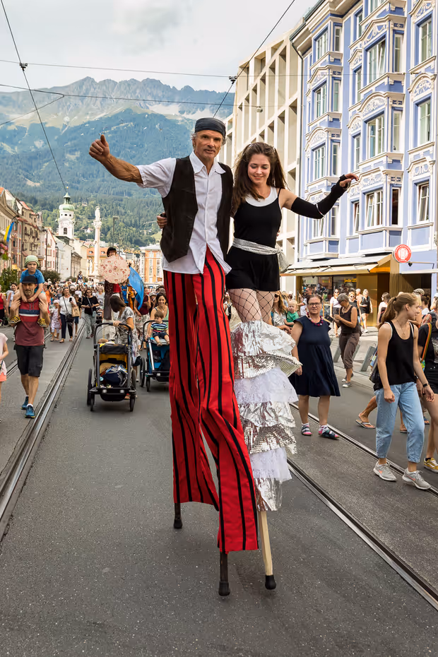 Innsbruck – Über 80 Aufführungen, zwei Paraden, Straßenkunstfeste im Park und am Marktplatz: Innsbruck steht wieder im Zeichen des „Neuen Zirkus“. Krapoldi im Park ist zurück in der Landeshauptstadt und die Eröffnung am Dienstag erfolgte mit einer bunten, farbenprächtigen und spektakulären Eröffnungsparade durch Innsbruck. Bis zum 4. September wartet jetzt auf die Besucher ein Programm, das mindestens so spannend und aufregend ist wie die gestrige Eröffnung. Innsbruck wird zur Spielwiese für Akrobaten, Clowns und Straßenkünstler.