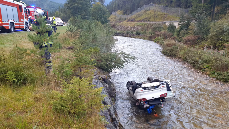 Auto stürzte nach Kollision in Ehrwald in Bachbett: Lenker blieb unverletzt