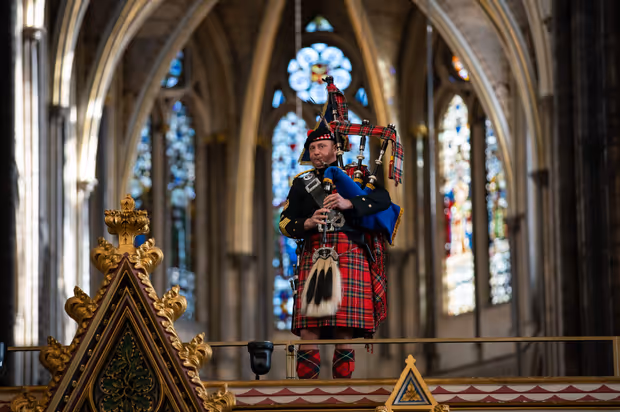 Während der Sarg aus der Kathedrale getragen wird, ertönt die schwermütige Musik des persönlichen Dudelsackspielers der Königin. Es war „the Queen's Piper“, der jeden Morgen, wenn sie in Schottland weilte, unter ihrem Schlafzimmer stand, um sie mit seinen Melodien zu wecken. „Sleep, Dearie, Sleep“ spielt er nun. „Schlaf, Liebes, schlaf“.