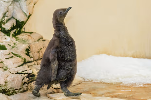 "Schwimmen kann das Pinguin-Küken allerdings noch nicht. Erst mit etwa zehn Monaten bekommen Königspinguine ein wasserabweisendes Gefieder. Bis dahin tragen sie ein wärmendes, braunes Daunenkleid. Welches Geschlecht das Küken hat, wird erst zu einem späteren Zeitpunkt durch eine genetische Untersuchung von Federproben ermittelt", erzählte Tierpflegerin Bettina Schragner.