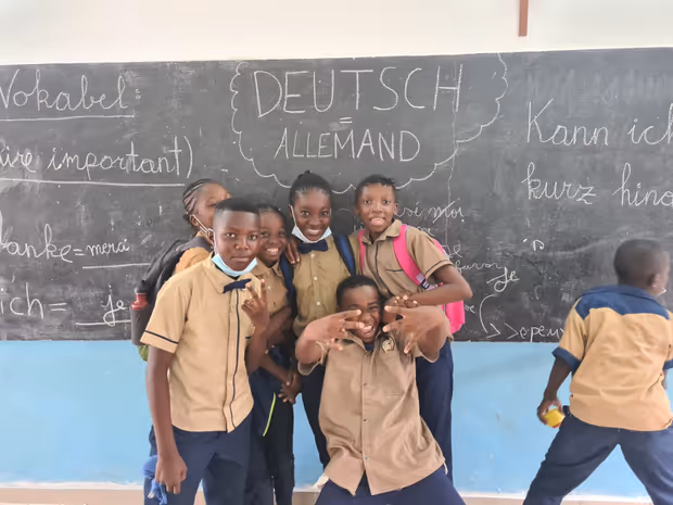 Aaron Gamweger mit den von ihm betreuten Schulkindern im Kongo.