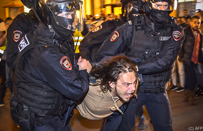 Bei Protesten in Russland gegen die von Kremlchef Wladimir Putin angeordnete Teilmobilmachung des Militärs sind mehr als 1.300 Menschen festgenommen worden. Das Bürgerrechtsportal OVD-Info zählte am Mittwochabend über 1.350 Festnahmen in 38 Städten des Landes. Allein in St. Petersburg wurden diesen Angaben zufolge 556 Demonstranten in Gewahrsam genommen, in der Hauptstadt Moskau waren es ebenfalls mehr als 500. Die Behörden machten zunächst keine Angaben zu den Festnahmen.