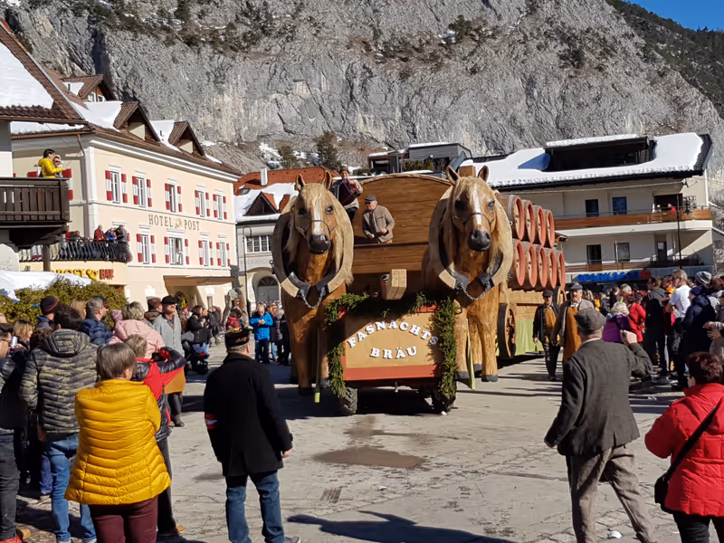 Um derartig prunkvolle Fasnachtswagen, wie hier in Nassereith, bauen zu können, benötigt es neben Geld und Arbeitskraft auch ausreichend Vorlaufzeit: Ob es reine Ausschankwagen gibt, wird momentan diskutiert.