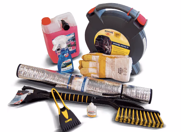 Sie sind die Klassiker in dieser Jahreszeit, werden gern vernachlässigt, sind aber für Fahrten im Winter die besten Helfer: Schneebesen, Eiskratzer, Scheibenenteiser, Handschuhe und eine Decke. Auch ein kleiner Spaten kann hilfreich sein. Erhältlich bei allen 15 Stützpunkten in Tirol.