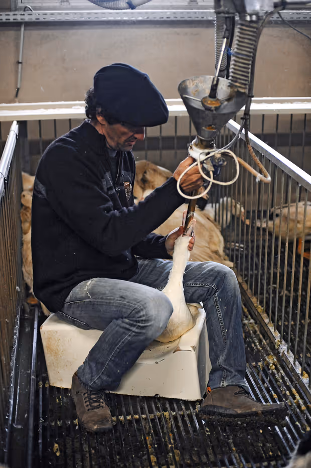 Peta geißelt das Stopfen der Gänse und Enten schon seit Langem als grausam und verweist auf das Mästen der Tiere über ein direkt in den Hals geschobenes Rohr. Bei der Stopfleber handele es sich um eine krankhaft vergrößerte Fettleber, die bis zu zehnmal so groß sei wie die Leber eines gesunden Tieres. Rechne man die Menge des zwangsweise verabreichten Futters auf den Menschen hoch, dann entspräche das bis zu 14 Kilogramm Nudeln pro Tag. Das Stopfen verursache gravierende Nebenwirkungen bei den Tieren: von Atemnot über Halsverletzungen bis hin zu Leberblutungen und Herzversagen.
