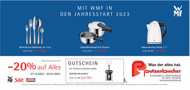 Das Spezialgeschäft für Haushalt, Bad und Schlafen im Herzen Innsbrucks präsentiert die neuesten Produkte von WMF.