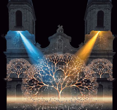 Kraftvolle Farben, fließende Bewegungen, kaleidoskopartige leuchtende Muster und Ornamente verwandeln das neue Rathaus in eine digitale Leinwand und in ein „Haus der Farben“. Ein farbenfrohes Spektakel, das die Maria-Theresien-Straße zum Leuchten bringen wird.