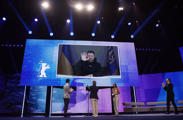 Berlin – Bevor die Filmfestspiele in Berlin eröffnet werden, erscheint der ukrainische Präsident auf der Leinwand. Wolodymyr Selenskyj spricht zu den Gästen der Berlinale. Und er erinnert an den Film „Der Himmel über Berlin“. Regisseur Wim Wenders habe damit das Ende der deutschen Teilung vorweggenommen. Heute sei es Russland, das eine neue Mauer in der Ukraine errichte. Es sei eine Mauer zwischen der Freiheit und der Sklaverei, sagt Selenskyj.