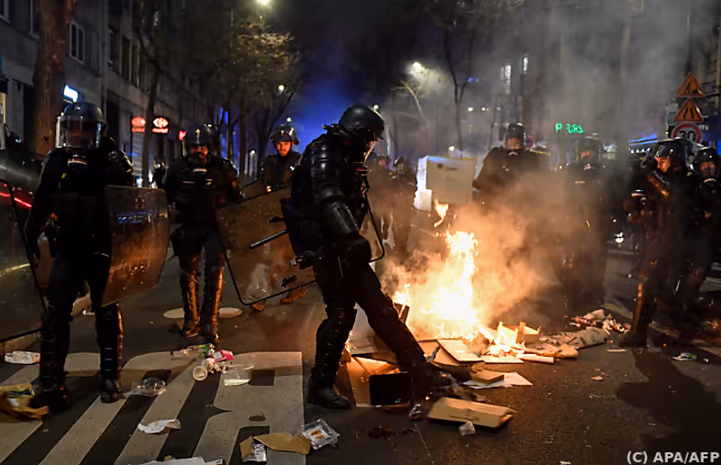 Bei Protesten gegen die Pensionsreform von Präsident Emmanuel Macron ist es in Frankreich am Samstag den dritten Abend in Folge zu Zusammenstößen zwischen der Polizei und Demonstranten gekommen. In Paris wurden Mülltonnen und Mistkübel in Brand gesteckt, die Polizei setzte Tränengas ein. Wie der Nachrichtensender "BFMTV" unter Berufung auf Polizeikreise berichtete, seien 81 Menschen festgenommen worden. Zu der Kundgebung hatten sich etwa 4.000 Demonstranten eingefunden.