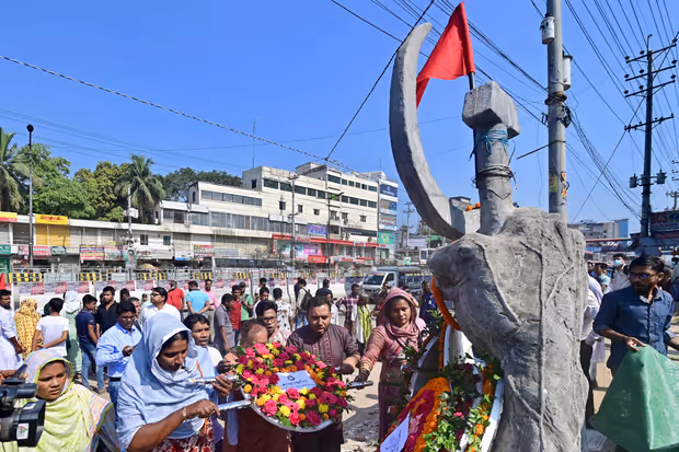 In Bangladesch haben einige Hundert Menschen den Opfern der Katastrophe gedacht. Sie legten am Montag Blumenkränze an der Stelle des Unglücks unweit der Hauptstadt Dhaka nieder.