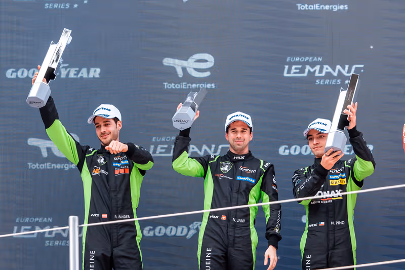 Zusammen mit seinen Duqueine-Teamkollegen Neel Jani (M.) und Nicolas Pino (r.) freute sich René Binder über den Auftaktsieg.