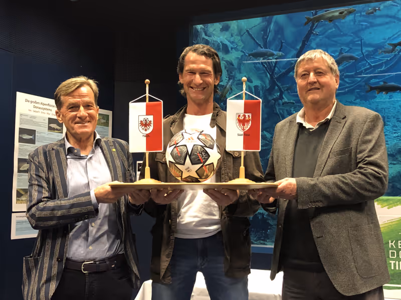 Treffen sich im Namen des verbindenden Adlers beim Supercup-Finale in Brixen wieder – TFV-Präsident Josef Geisler (l.), Initiator Andreas Lener und Südtirols Verbandsoberhaupt Klaus Schuster (r.).