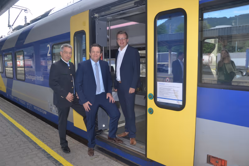 Setzen gemeinsam auf die Bahn: Landrat Otto Lederer, Verkehrslandesrat René Zumtobel und Euregio-Präsident Christoph Schneider (v. l.) stellten die neue grenzüberschreitende Aktion vor.