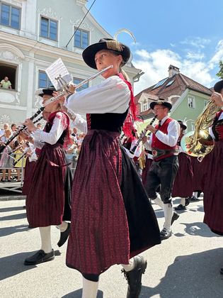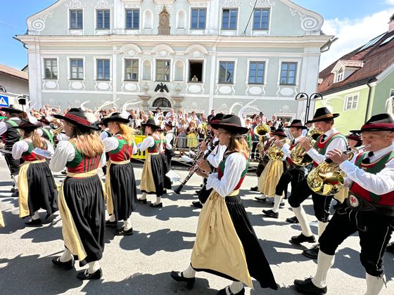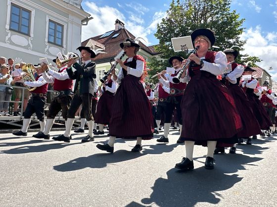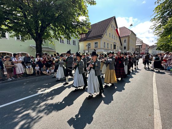 Am Festumzug zu Mittag nahmen alle Blasmusikkapellen des Bezirks teil. 1600 MusikantInnen hüllten den Markt in eine Klangwolke – bejubelt von den tausenden Festbesuchern.