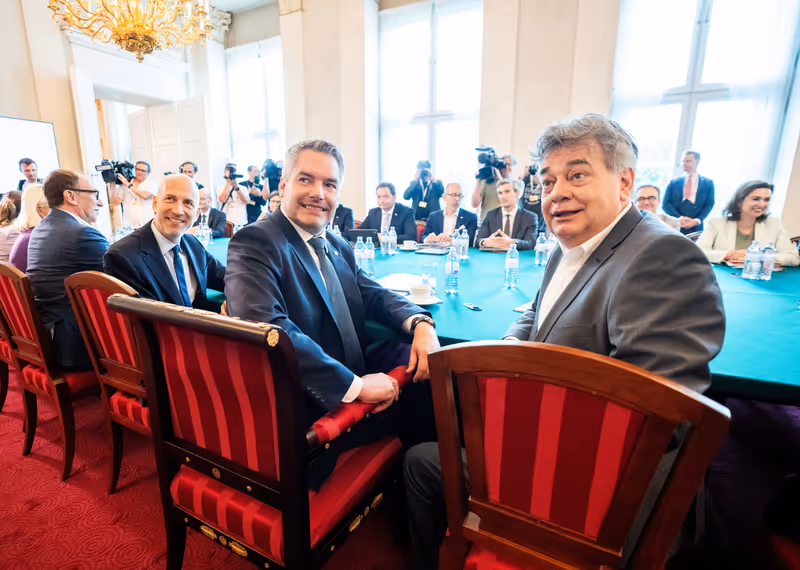 Nach einer Stunde wird zum Pressefoyer gerufen. Nehammer, Kogler und Grünen-Gesundheitsminister Johannes Rauch treten auf. Jenen Teil der Gesundheitsreform, der ohne Konsens mit den Ländervertretern machbar ist, präsentieren sie. Im „Fünf-Punkte-Plan“ finden sich die schon mehrfach angekündigten 100 zusätzlichen Kassenarztstellen bis Jahresende.
