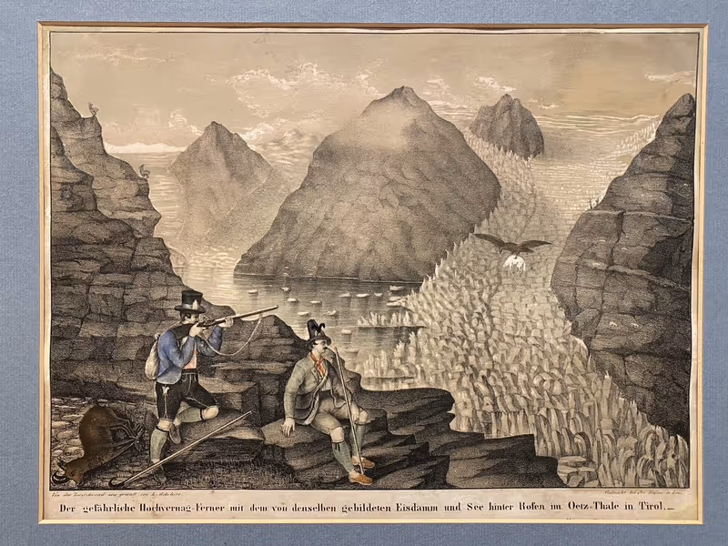 Angesichts dieser Aussicht sehnt man sich beinahe zurück in eine Zeit, als Gletscher noch eine Bedrohung für Land und Leben waren – und besagtes Leben, wie es Franz Jäger in seinem Beitrag zum Sammelband hervorhebt, „nur mit und nicht gegen die Natur gelingen“ konnte. Bis weit ins 19. Jahrhundert hinein stieß der Gletscher in Kaltphasen in den Lebensbereich der Bewohner des hinteren Ötztals vor. Eis verriegelte ganze Taler, dahinter drohte aufgestautes Wasser. Die Erzählungen von „Polarmeeren“ im Hochgebirge – darin lässt sich durchaus auch unfreiwillige Ironie erkennen – machte die Gegend in vortouristischer Zeit für Reisende und Künstler, die das Außerordentliche, Ursprüngliche und Erhabene suchten, interessant.