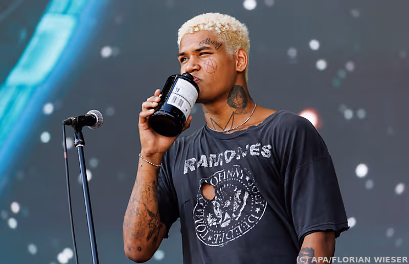 Den ersten Auftritt auf der Hauptbühne Space Stage hatte jedoch der kanadische Solo-Act Ekkstacy zugelost bekommen, der zeitweise mit einer Flasche Gin in der Hand kurz nach 14.00 Uhr seine Portion in Musik gegossenen Weltschmerz wiedergab. Der Hitzestress war am Donnerstag jedenfalls nicht groß, 28 Grad und 50 Prozent Luftfeuchtigkeit waren die Rahmenbedingungen. Trotzdem sorgte sich der kanadische Rapper BBNO$, eine für "baby no money" stehende Abkürzung, doch ein wenig um sein Publikum. Im Gegensatz zu seinem auf Hochprozentiges setzenden Vorgänger trank er heimisches Mineralwasser und riet, dies ihm gleichzutun: "Drink some water, don't get fucked up."