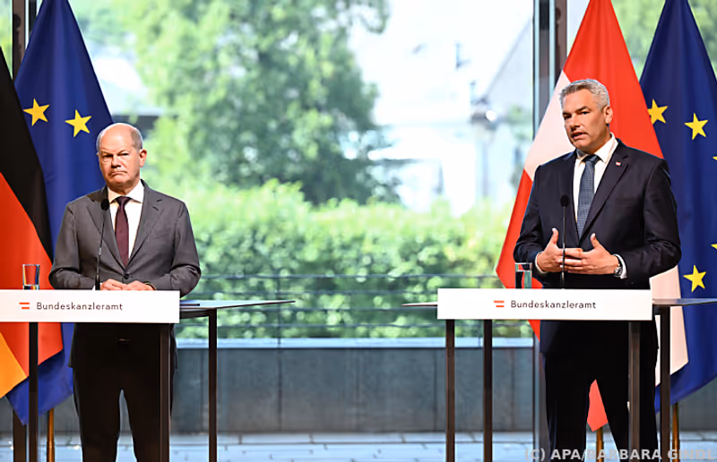 Der deutsche Kanzler zeigte sich gleichzeitig zuversichtlich, dass derzeit in Verhandlungen befindliche neue EU-Asylmechanismus sowie Abkommen mit Herkunfts- und Transitländern eine Verbesserung der Migrationszahlen in Europa bringen werden. Sowohl er als auch Nehammer sprachen gleichzeitig die Schwierigkeit an, dass insbesondere über Ungarn nach Österreich und Deutschland kommende Asylwerber entgegen der geltenden Regelung großteils nicht an der EU-Außengrenze registriert wurden.