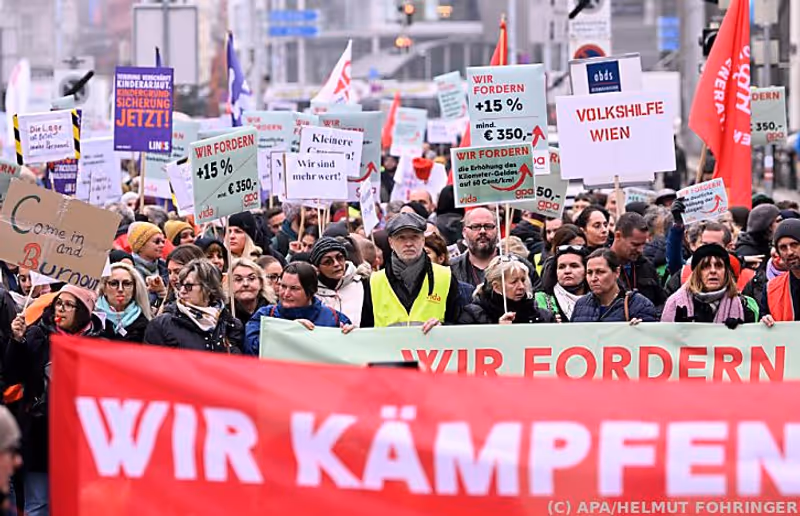 Im privaten Pflege-, Gesundheits- und Sozialbereich sind die Kollektivvertragsverhandlungen am Dienstag mit Übergabe der Forderungen der Gewerkschaften GPA und vida gestartet. Verlangt wird darin eine Lohn- und Gehaltserhöhung von 15 Prozent, mindestens aber 400 Euro. Der Arbeitgeberverband Sozialwirtschaft Österreich (SWÖ) bezeichnete dies als "sicher nicht realisierbar".