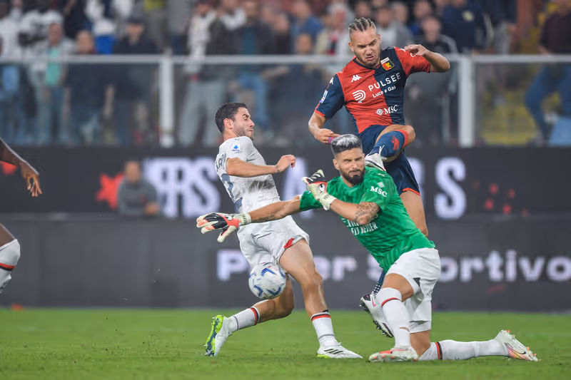 Genua - Der französische Ex-Weltmeister Olivier Giroud macht auch als Tormann eine gute Figur. Der Torjäger musste am Samstag beim 1:0 vom AC Mailand im Auswärtsspiel gegen den FC Genua in der Nachspielzeit zwischen den Pfosten einspringen, nachdem Keeper Mike Maignan die Rote Karte gesehen hatte. Milan hatte zu der Zeit bereits fünfmal gewechselt.