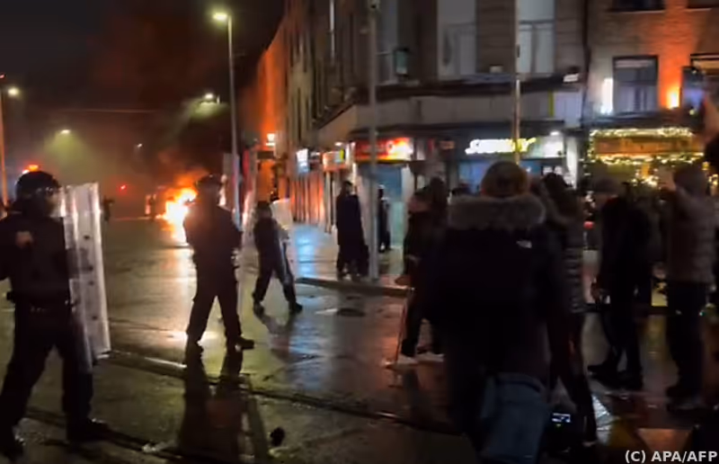 Einem Reporter des britischen Nachrichtensenders Sky News zufolge sollen Hunderte teils vermummte Krawallmacher an den Ausschreitungen beteiligt gewesen sein. Die irische Justizministerin Helen McEntee sprach von "Schlägern, Kriminellen, die diesen entsetzlichen Angriff nutzen, um Spaltung zu säen und Chaos anzurichten". Das werde nicht toleriert.