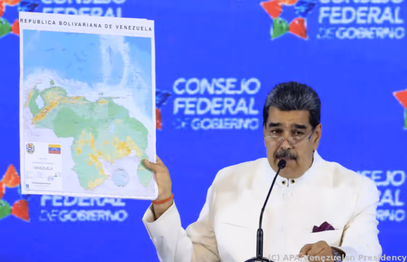 Im Streit um die ölreiche Region Essequibo nehmen die Spannungen zwischen Guyana und Venezuela zu: Nach einem umstrittenen Referendum über die Grenzziehung zu Guyana rief Venezuelas Präsident Nicolás Maduro am Dienstag dazu auf, das dem südamerikanischen Nachbarland unterstehende Gebiet per Gesetz zu einer venezolanischen Provinz zu erklären und Lizenzen für die Öl-Förderung auszugeben. Guyanas Präsident Irfaan Ali sprach von einer "direkten Bedrohung" für sein Land.