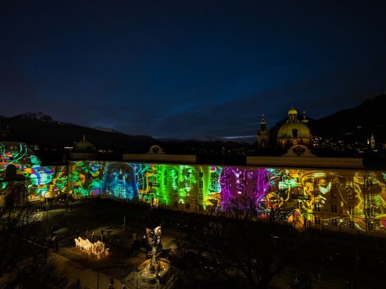 Die Hofburg, die Hofkirche, der Dom zu St. Jakob sowie die berühmte Häuserzeile in Mariahilf werden von 29.12. bis 6.1., täglich ab 17 Uhr, zur spektakulären Kulisse für außerordentliche Bild- und Klangwelten mittels 3D-Fassadenmapping. Eingebettet in die imposante Kulisse der Nordkette zeigen sich die lebendige Vielfalt und das einzigartige Flair Innsbrucks an allen Ecken der Stadt. Der vermeintliche Gegensatz von „alpin“ und „urban“ wird auf die Fassaden geholt – urbane Schnelligkeit und Dynamik kombiniert mit alpiner Entschleunigung.