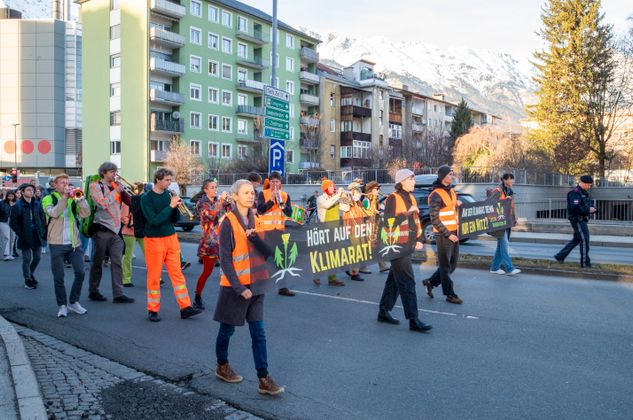 Innsbruck – Am Montagnachmittag haben AktivistInnen der „Letzten Generation“ am Südring die Kreuzung vor dem AZW blockiert. Ab 16 Uhr trafen sich rund 60 Teilnehmer, darunter auch Musikanten, um für den Klimaschutz zu protestieren. Kurz nach 18 Uhr wurde die Versammlung aufgelöst.
