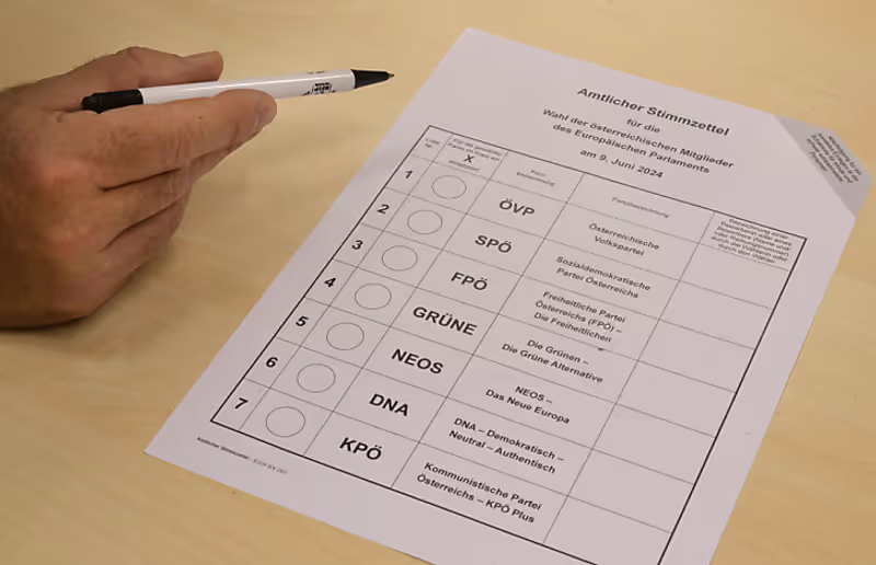 Bei der EU-Wahl am 9. Juni stehen sieben Listen zur Wahl. ÖVP, SPÖ, FPÖ, Grüne und NEOS werden wohl sicher erneut ins EU-Parlament einziehen. Geht man nach den Umfragen, so hat die FPÖ die besten Chancen auf Platz eins. Das wäre eine Premiere, denn seit dem EU-Beitritt 1995 standen immer ÖVP oder SPÖ ganz vorne. Neben den im EU-Parlament vertretenen Parteien kandidiert auch wieder die KPÖ, ebenso die neu gegründete Liste DNA. Im Folgenden ein Überblick über die Ausgangslage.