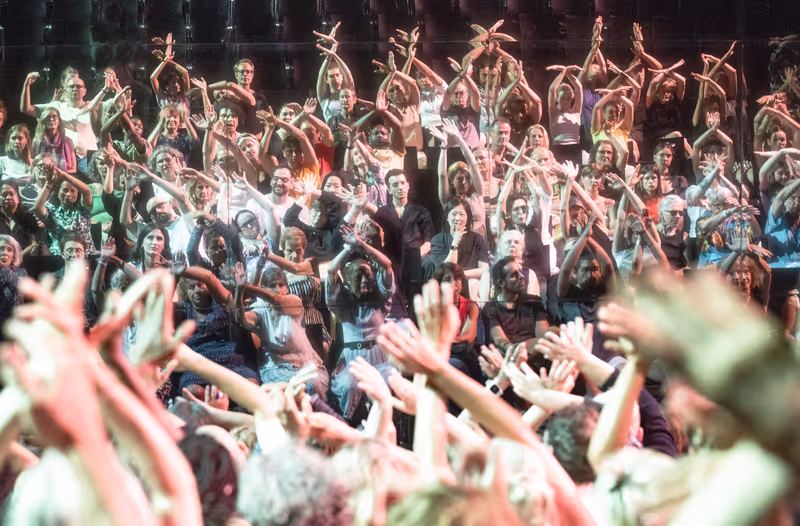 Partizipatives Theater, aber anders: Mit „Spiegelneuronen“ macht Rimini Protokoll das Publikum zum Versuchstierchen. Ein Experiment, das über Gruppenverhalten und Demokratie nachdenkt und mehr ist als eine gemeinsame Aerobicstunde.