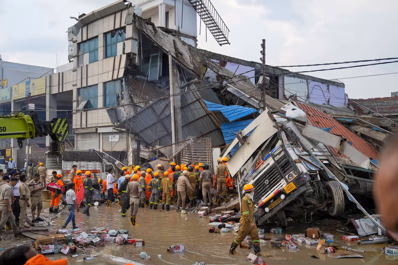 Ob noch weitere Menschen unter den Trümmern eingeschlossen waren, war zunächst nicht bekannt. Bei dem Gebäude handelte es sich um ein Geschäftsgebäude, das von mehreren Unternehmen unter anderem als Warenlager oder Werkstatt genutzt wurde. Ein Mann, der im Erdgeschoss des Hauses arbeitete, erklärte, er habe einen Riss in einer Säule bemerkt. „Plötzlich stürzte das gesamte Gebäude auf uns ein“, sagte er PTI zufolge.